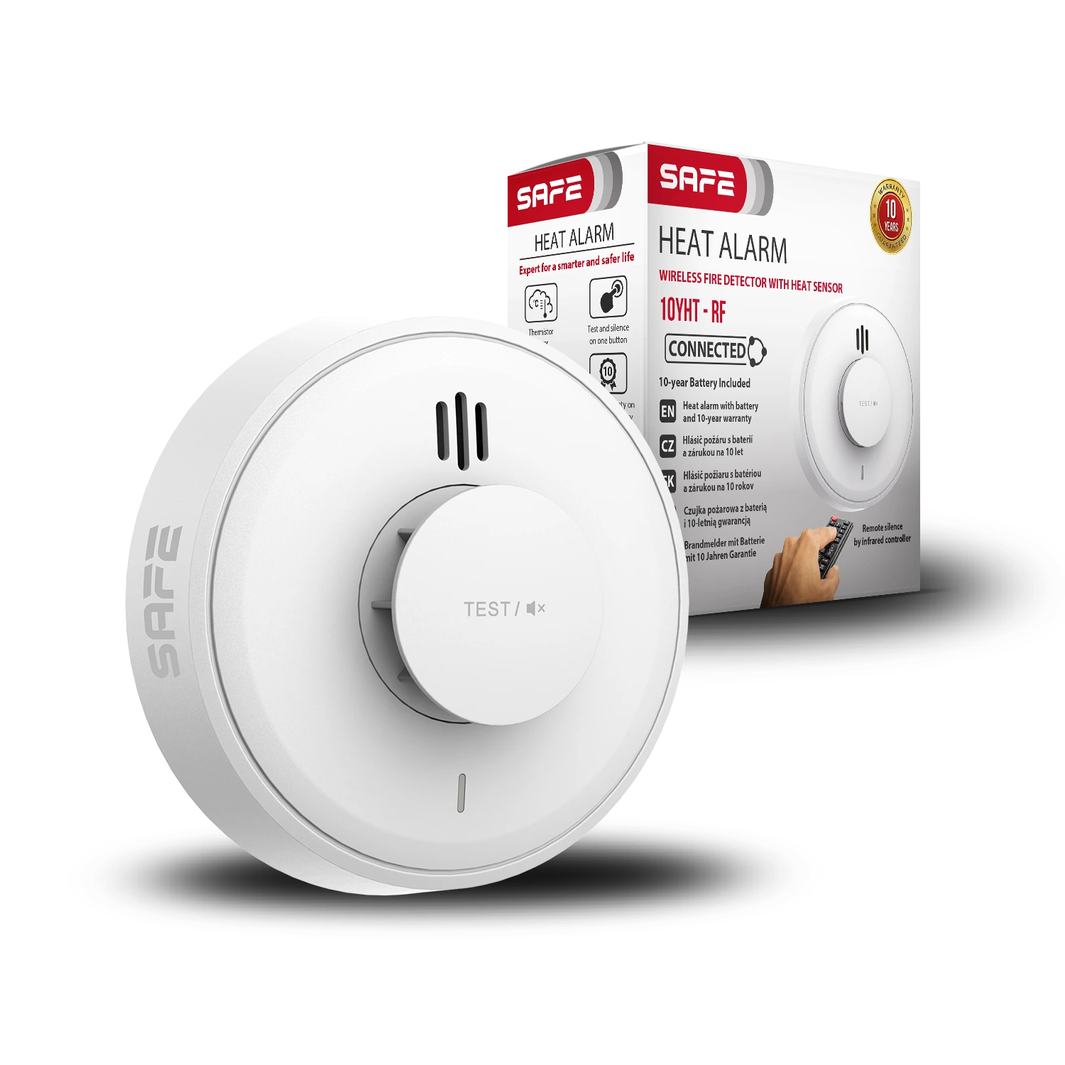 SAFE 10YHT – RF je navržen v nízkoprofilovém kompaktním designu, propojující nejnovější technologii hardwaru a softwaru aplikovaného do funkční konstrukce inteligentního detektoru představujícího novou úroveň standardu v oblasti požární bezpečnosti obytných budov.