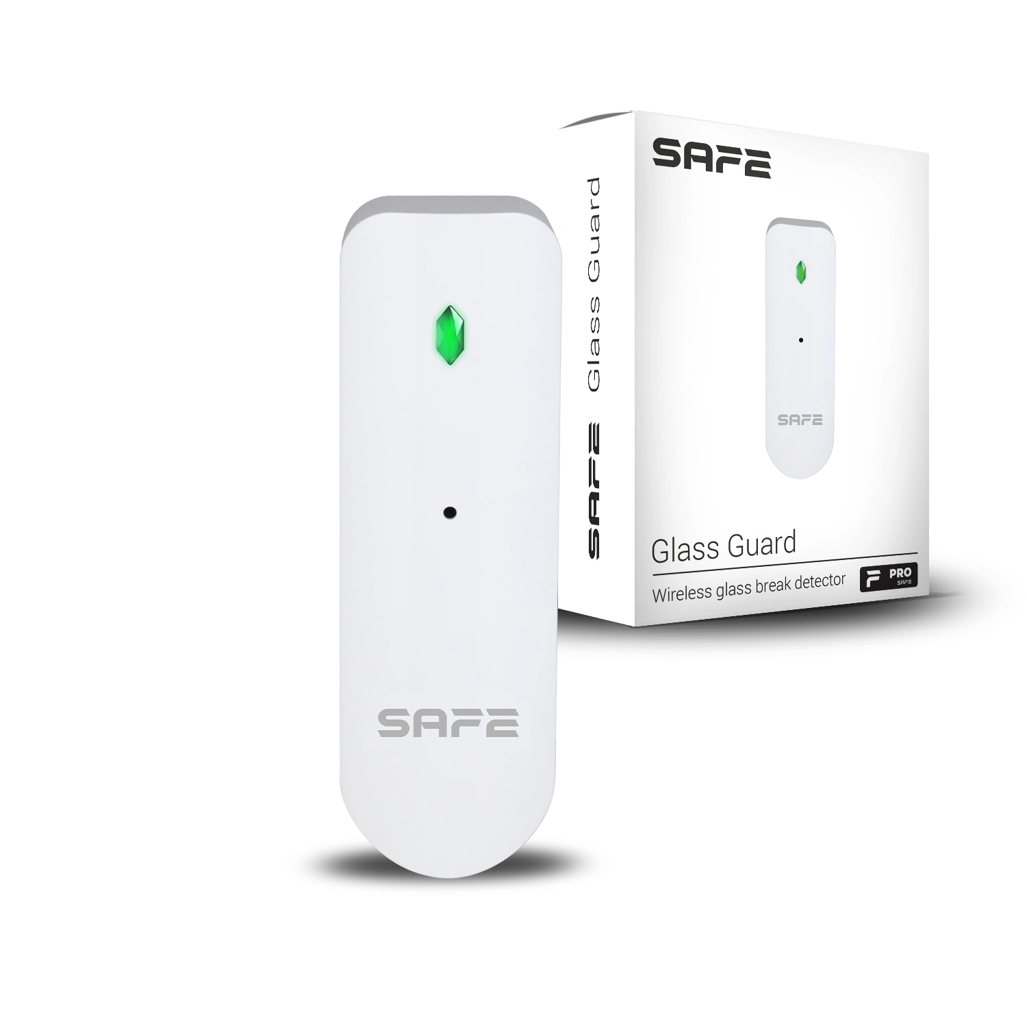 Glass Guard je velmi malý bezdrátový detektor tříštění skla určený pro zabezpečení prosklených ploch vybavený dvěma NC vstupy. Vícefaktorová detekce tříštění skla s možností vzdálené konfigurace citlivosti výrazně eliminuje výskyt falešných poplachů. Díky šifrovanému komunikačnímu protokolu SAFE Keeper zajišťuje bezpečné spojení s centrální ovládací jednotkou zabezpečovacího systému SAFE až na vzdálenost 1 600 metrů v otevřeném prostoru. Detektor je napájen vyměnitelnou baterií, která umožňuje nepřetržitý provoz až po dobu 3 let.