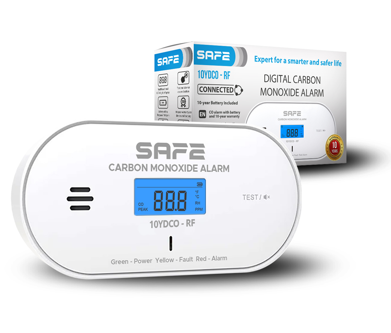 SAFE 10YDCO – RF je hlásič oxidu uhelnatého, který se pyšní nadčasovým kompaktním designem a spojením nejnovější technologie hardwaru a softwaru aplikovaných do funkční konstrukce inteligentního detektoru představující novou úroveň standardu v oblasti požární bezpečnosti obytných budov.